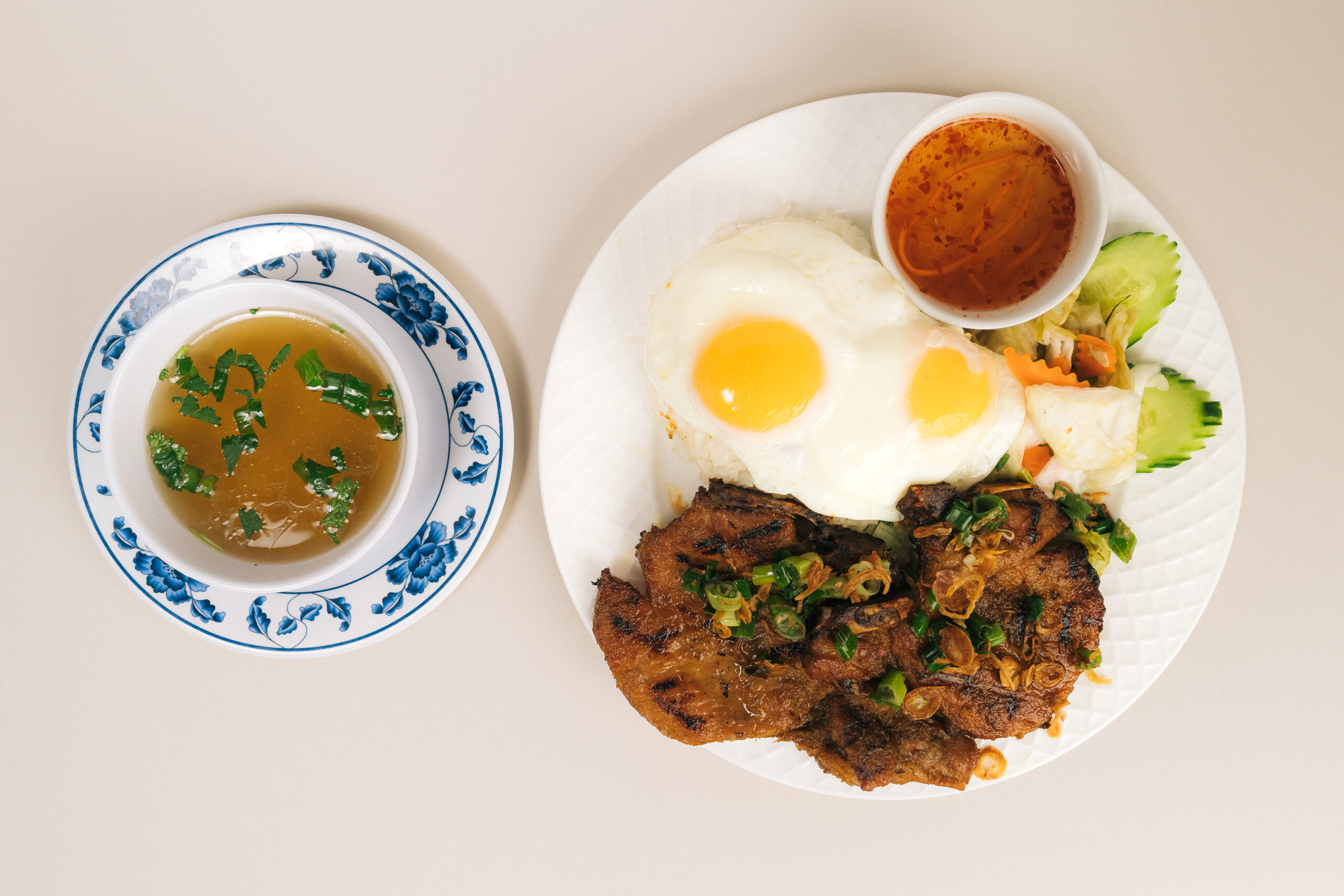 Served with lettuce, cucumber, pickled cabbage, fish sauce. Soup (dine-in only)